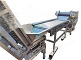 設(shè)備運行原理:本選果機利用控制直徑大小間隙來分選小型藍莓漿果的等級大小,直徑尺寸由小到大,果子小于間隙的尺寸即可落下,落入這一級的下料筐里,大于這個間隙尺寸的果子則繼續(xù)向前傳送,直到落入小于那個尺寸的下料筐里,一級一級分選大小等級,整個分選皮帶部分是左右晃動的,從而達到對藍莓的精確分選,不傷果實,分選速度快,效率高,節(jié)省人力勞力,提高的工作效率。