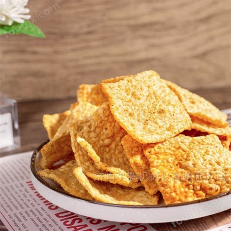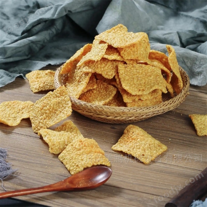 2.苦蕎片從膨化機(jī)出來以后,需要切斷成片狀,然后經(jīng)過油炸鍋進(jìn)行油炸,口感酥脆有營養(yǎng)。