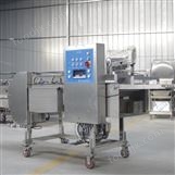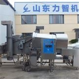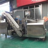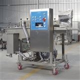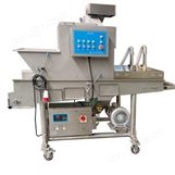 蟹鉗自動(dòng)上面包糠機(jī)通過(guò)料斗里泄出的面包屑和下網(wǎng)帶上的面包屑將面包屑均勻涂裹在雞肉、牛肉、豬肉、魚蝦等產(chǎn)品上。上漿后的產(chǎn)品進(jìn)入下網(wǎng)帶,底部及側(cè)面沾滿面包屑,從上料斗流下的面包屑將產(chǎn)品上部覆蓋。經(jīng)過(guò)壓輥壓緊(上、下網(wǎng)帶上的面包屑厚度課方便調(diào)節(jié))。可充分將面包屑裹附與產(chǎn)品之上,上面包屑后經(jīng)風(fēng)淋,將多余的面包屑吹落。