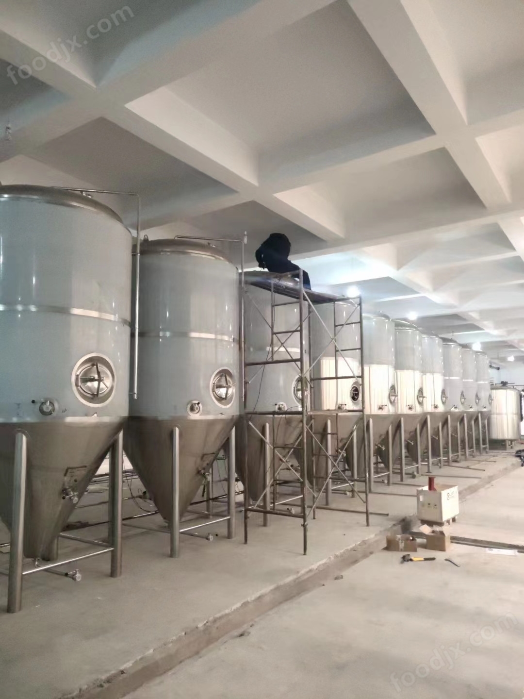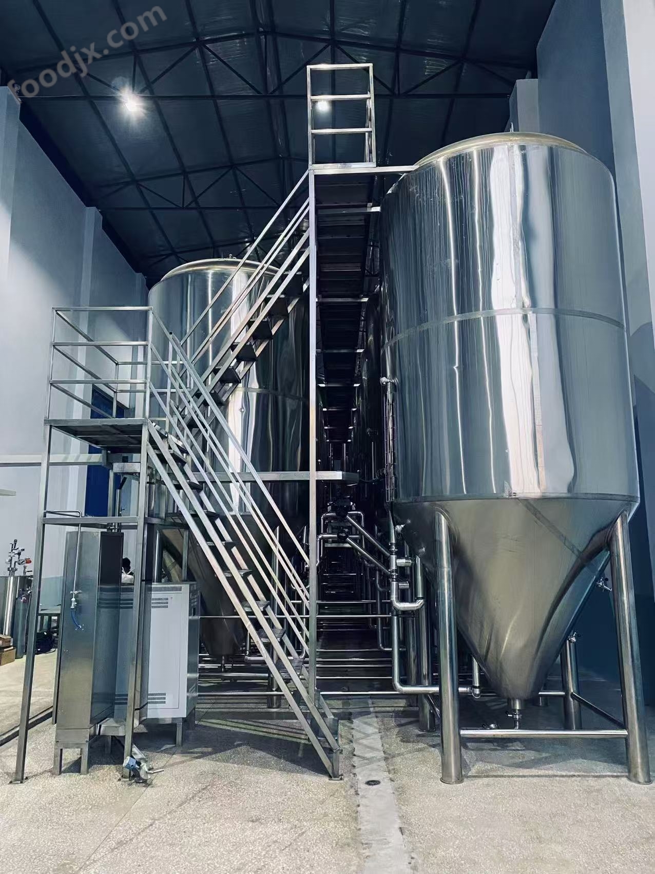 完整釀造系統(tǒng):涵蓋原料處理到成品儲存的全流程設(shè)備,原料備制環(huán)節(jié)配有離心式除塵器、振動篩和輥式粉碎機,保障麥芽粉碎效果;糖化系統(tǒng)可選擇兩器至五器等多種組合,包含糊化鍋、糖化鍋等全套設(shè)備,能高效完成麥汁制備;發(fā)酵罐采用 60° 小錐底設(shè)計,利于酵母沉淀,搭配的制冷機組和冰水罐可穩(wěn)定控制發(fā)酵溫度,配合清酒系統(tǒng)還能實現(xiàn)啤酒的成熟與澄清。
