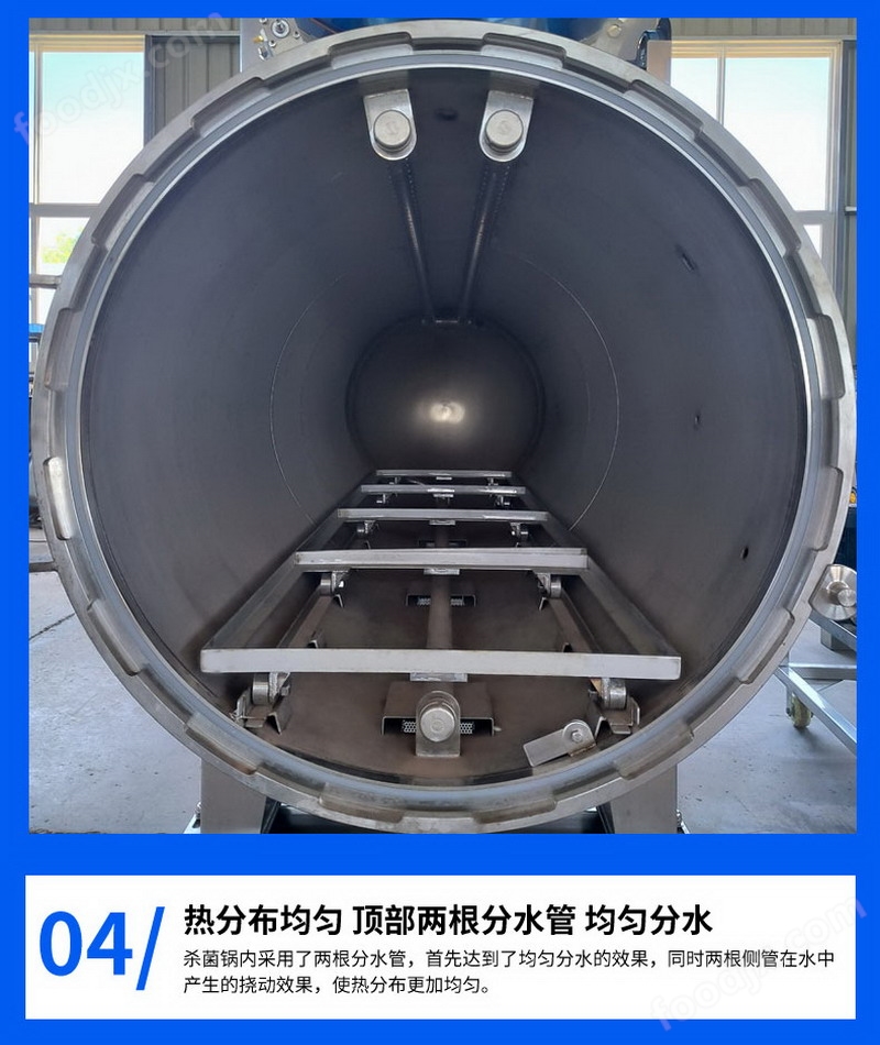 內(nèi)層配備攪拌或循環(huán)裝置,推動(dòng)熱水流動(dòng),確保鍋內(nèi)各區(qū)域溫度一致,消除殺菌死角。