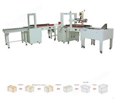 自動開箱、裝箱、遮蓋封箱、井字打包流水線